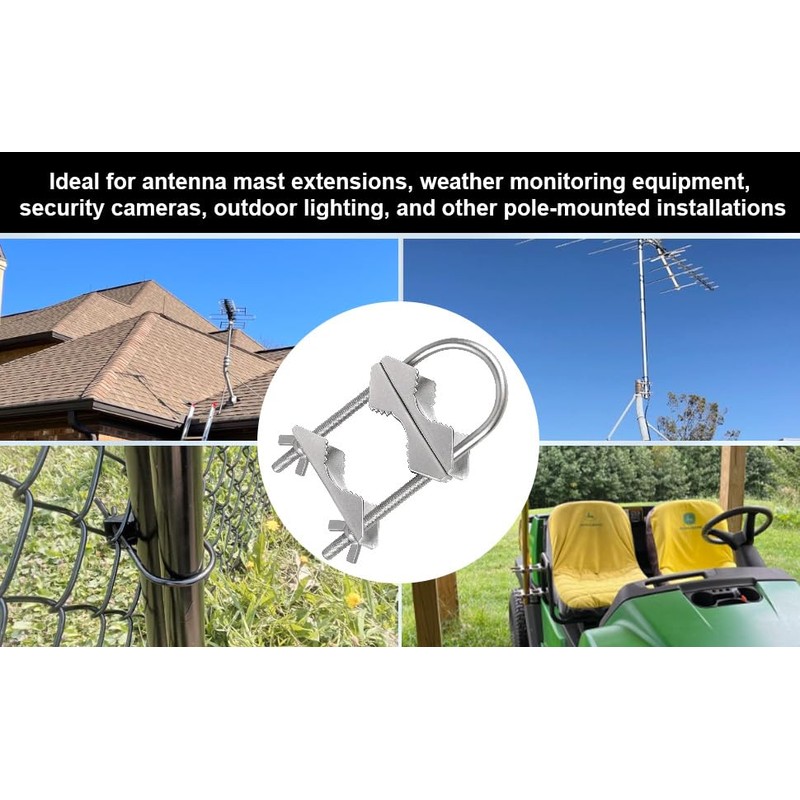 - HEAVY-DUTY CONSTRUCTION - The Double Antenna Mast Clamp is crafted from high-quality galvanized zinc-plated iron with an anti-rust coating, ensuring exceptional durability. Built to withstand harsh weather conditions, it delivers long-lasting performance. Ideal for mounting larger antennas to a mast or connecting one pole to another.