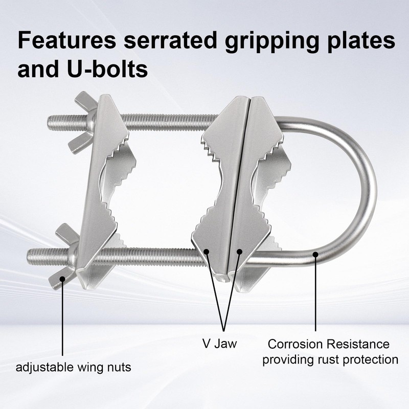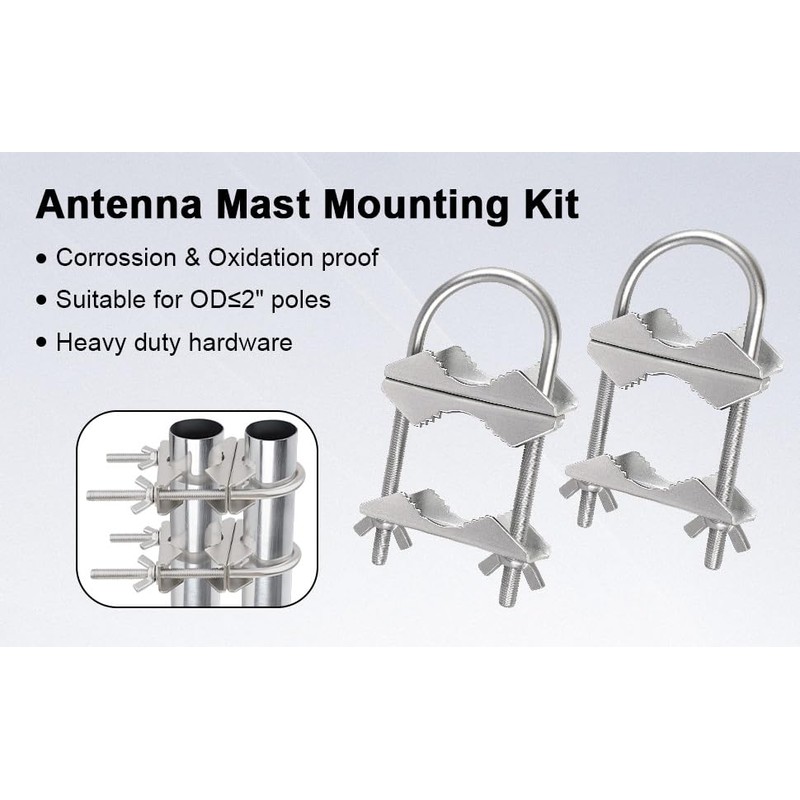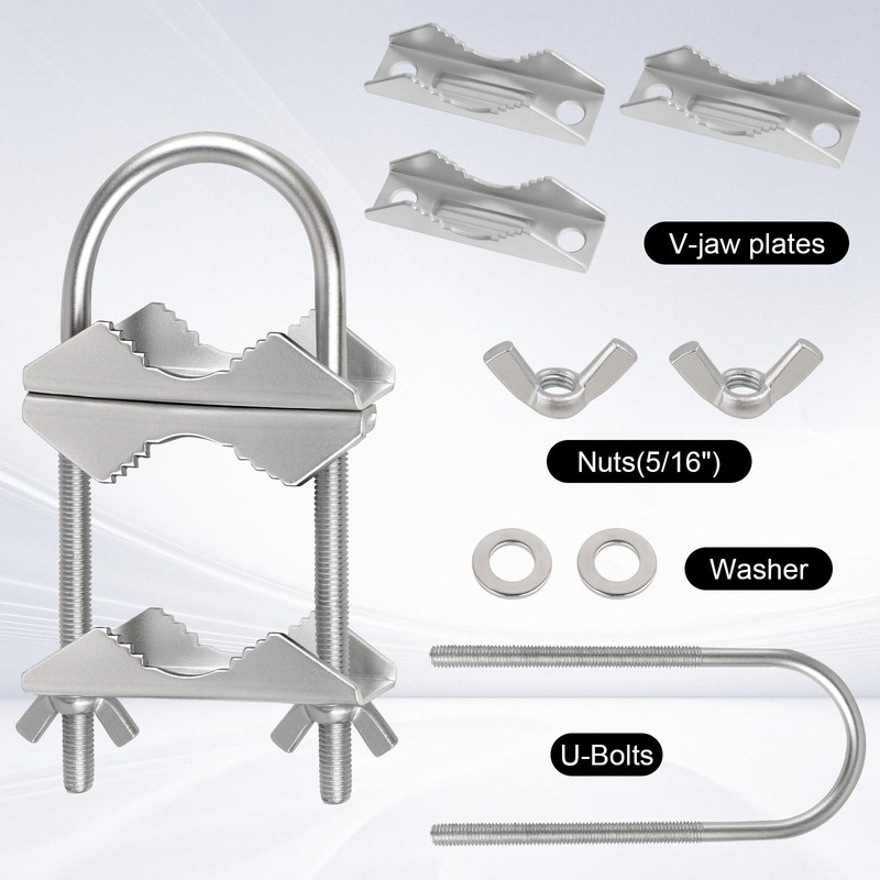 - Double Antenna Mast Clamp V Jaw Bracket with U Bolts Heavy Duty Anti-Rust Mast to Mast Mounting Hardware Kit for Outdoor TV Antenna,CB Ham Antenna,Radio Antenna,Pipe,Flag Pole,Hold Umbrella Parasols for Deck Railing,Fence(2 Set)