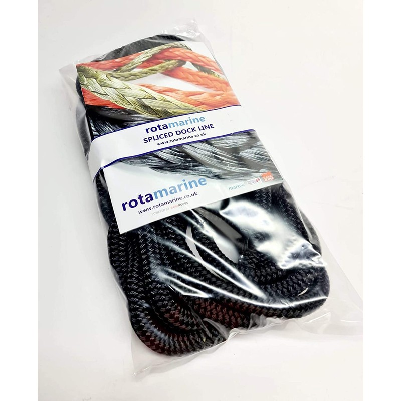 Double Braid 12mm Dockline Polyester Braid on Braid Spliced Mooring rope Dock Lines READY TO USE (Black, 6mt)