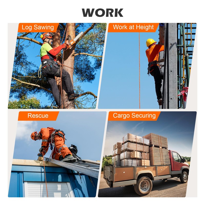 - [Versatility] The rock climbing rope is perfect for tree work, rock climbing, sailing, swing, car towing, camping, and other outdoor activities