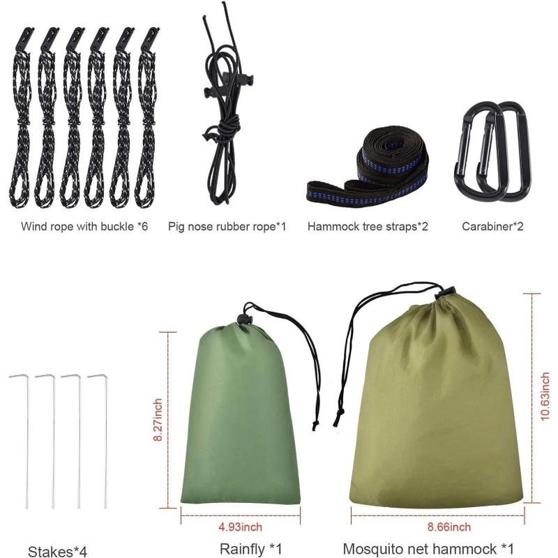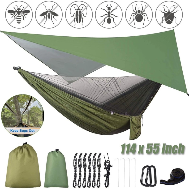 Double Camping Hammock With Mosquito Net Nylon Hanging Bed & Rain Fly Tent Tarp