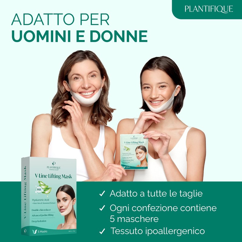 Double Chin V-Line Face Belt by PLANTIFIQUE - 5 Face Masks for a Firming Effect - Natural Solution for a Young, Fresh Appearance - Face Mask for a Sculpted and Toned Face Contour