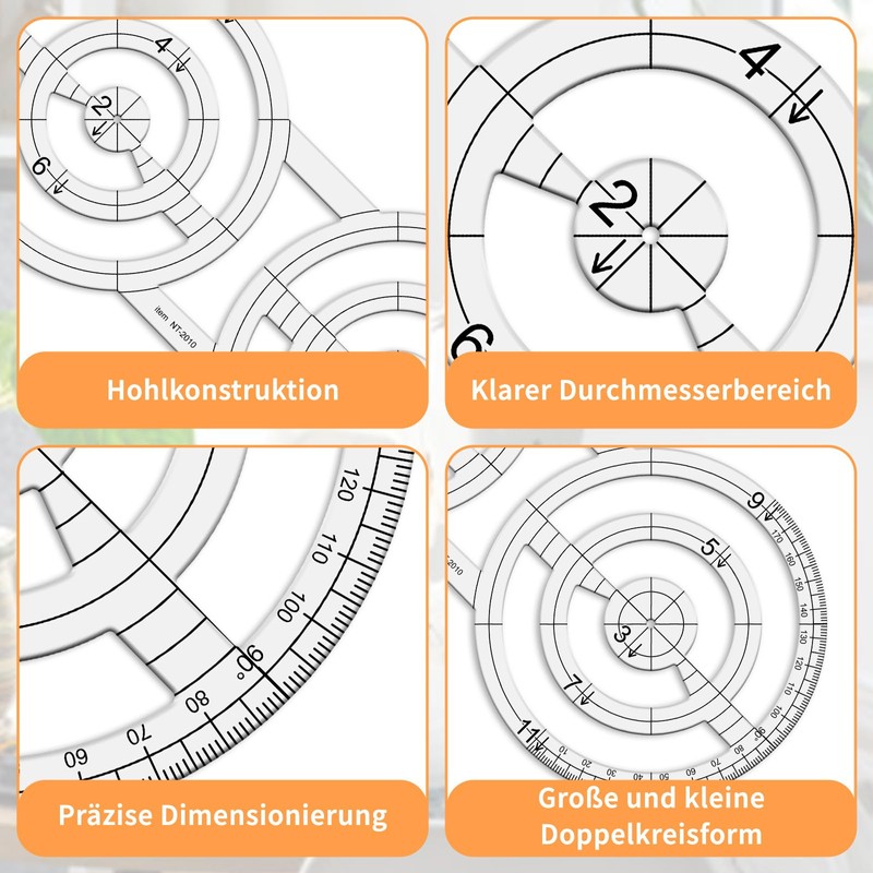 - Multiple sizes in one double circle design: ruler sewing multiple sizes in one foot with 2,3,4,5,6,7,8,9,10,11 cm size scale, there is a whole semicircle degree marking, so you have one foot for multiple purposes, very practical