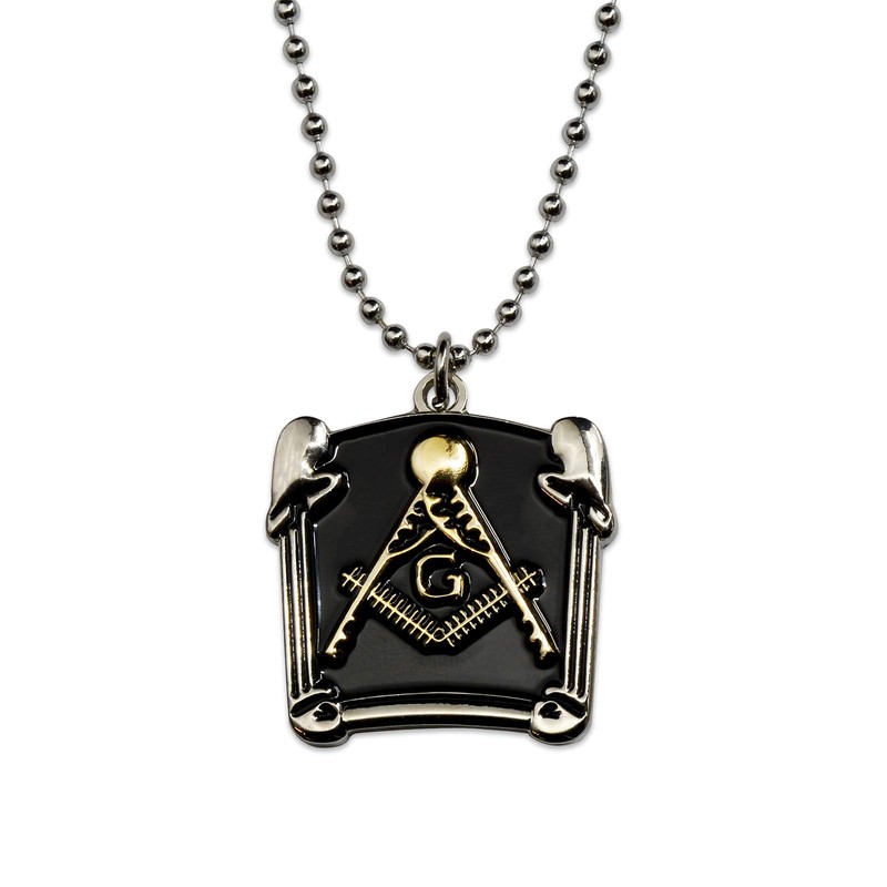 Double Column Square & Compass Masonic Necklace - [Black & Gold][1 1/4'' Tall]