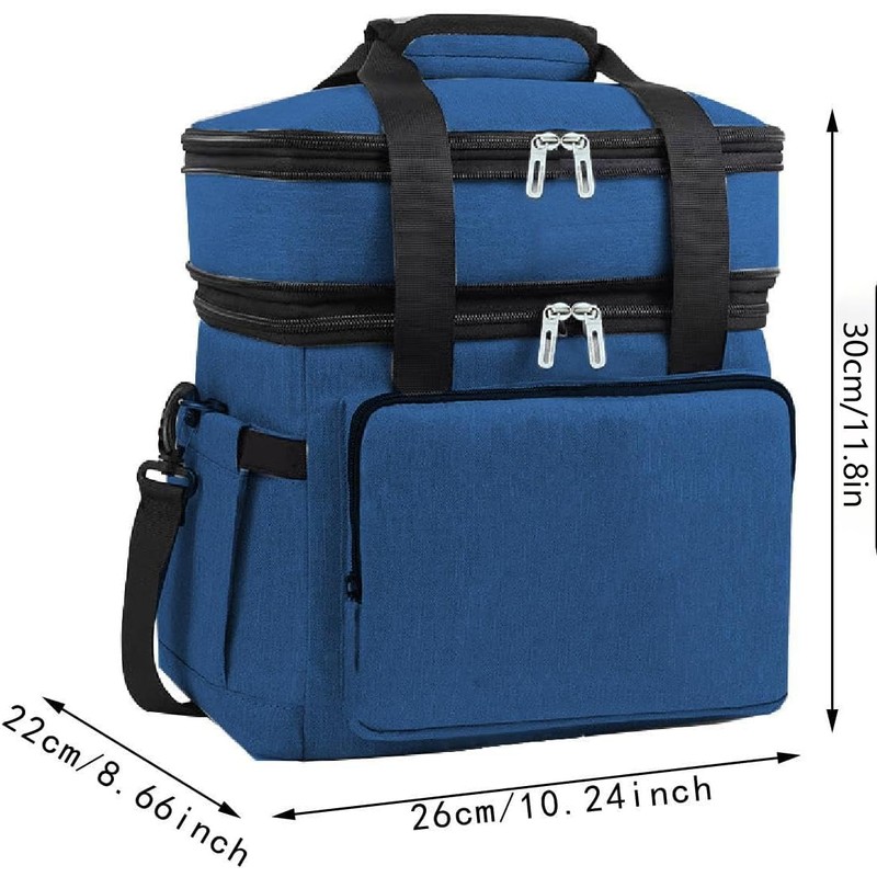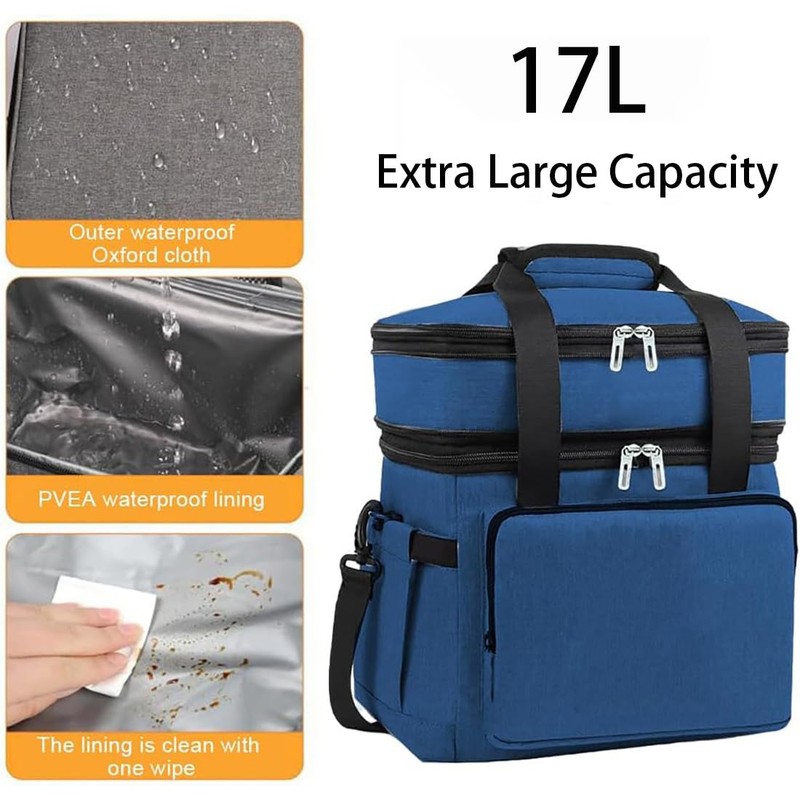 Double Deck Insulated Lunch Box, 17L Expandable Large Lunch Bag Leakproof Cooler Bag for Work/Picnic/Outdoor, Navy Blue