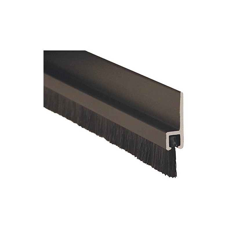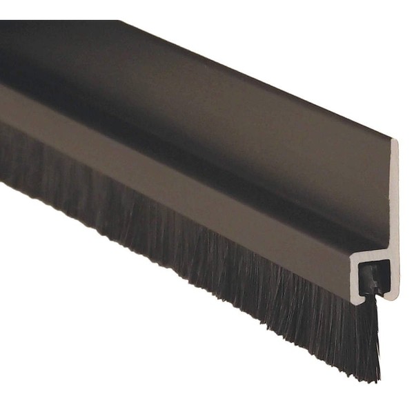 ' Double Door Weatherstrip, Insert Type Brush, Insert Material Nylon, Insert Color Black, Insert Size 3/8 In., Flange Material Aluminum, Flange Color Dark Bronze, Flange Finish Anodized, Flange Height 1/4 In., Flange Width 3/4 In., Flange Thickness 1/4 In., Overall Length 8 ft., Overall Width 1-1/8 In., Stays Flexible to -40 Degrees F, Projection 3/8 In., Mounting Type Surface, Max. Door Gap 1/2 In., Fire Rated 3 hr., For Use With Wood and Hollow Metal Pair of Doors, Hardware Included '