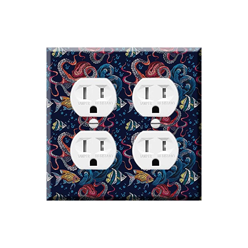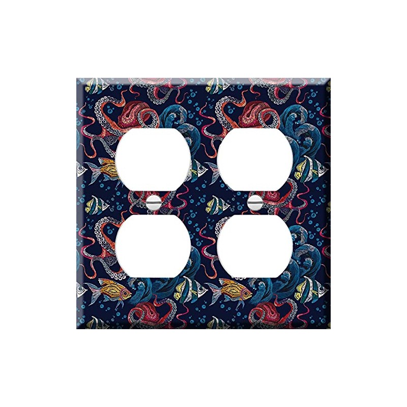 Double Duplex Outlet Cover Wall Plate - Octopus and fish pattern