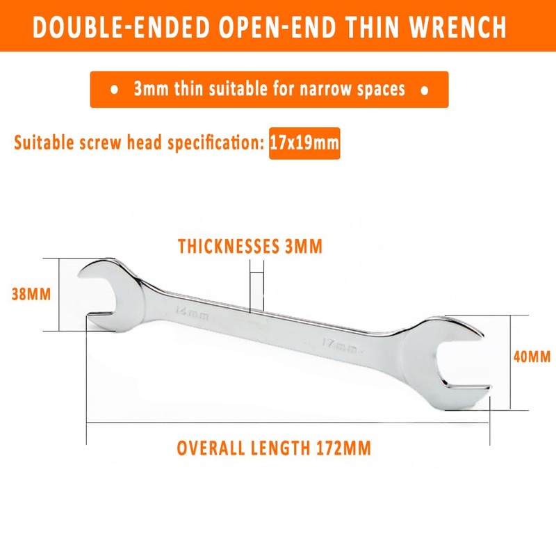 Double End Wrench Ultra Thin Open End Flat Double Sided Open-End Spanner for Use in Limited Space Conditions (Pack of 1, Screw Specification 17 x 19 mm)