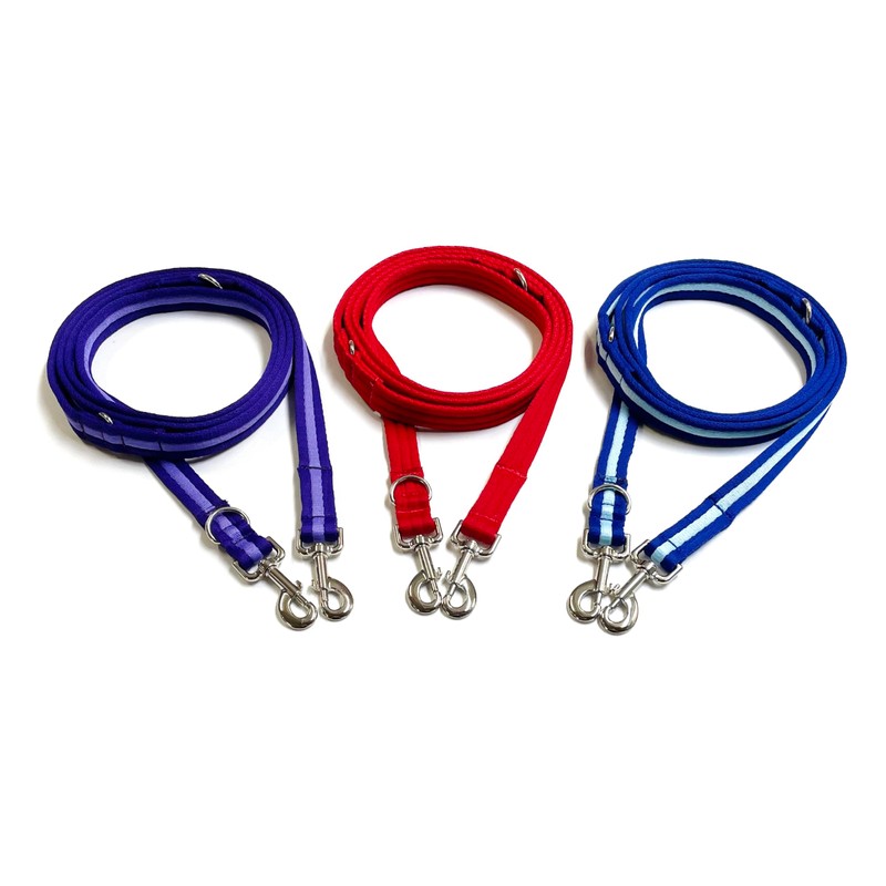 - Using high quality materials - Polyester air webbing which is very soft for the handler, strong and durable. Complete with two nickel plated swivel trigger clips and 3 sewn in D-rings.