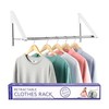 Double Foldable Clothing Rack w/Extension Rod, Wall-Mounted Retractable Clothes Hanger for Laundry Dryer Room, Hanging Drying Rod, Small Collapsible Folding Garment Racks, Dorm Accessories (White)