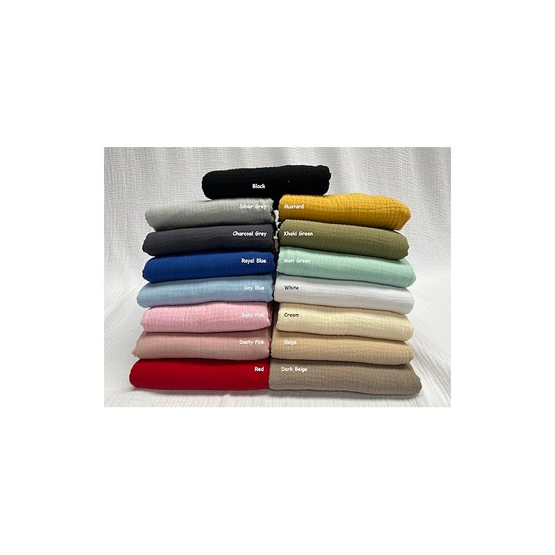 - Available in 15 colours. Composition: 100% cotton double layer gauze.