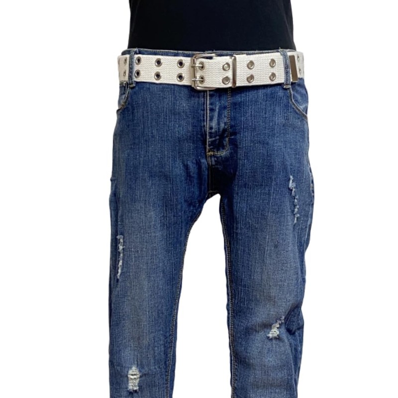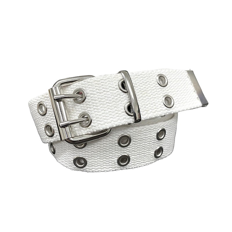 Double Grommet Belt Canvas Punk Style Web Belt Double Eyelet for Women Men Jeans 2 Hole Belts 1.5'' Wide (white, L: waist size 36"~40")