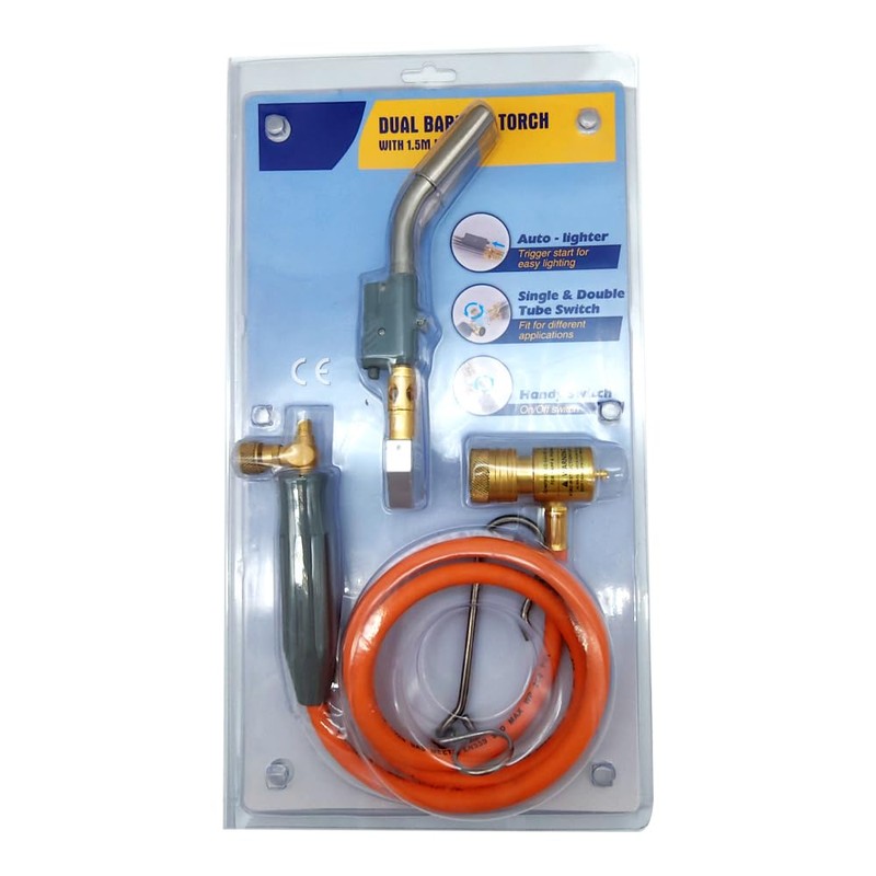 Double Heads Mapp Gas Torch Turbo with 5ft long Hose WT-10, Map Torch Turbo Tips Mapp Gas Torch Propane Torch Head Handheld
