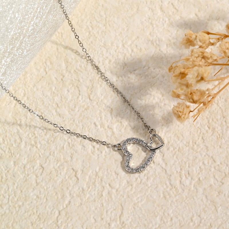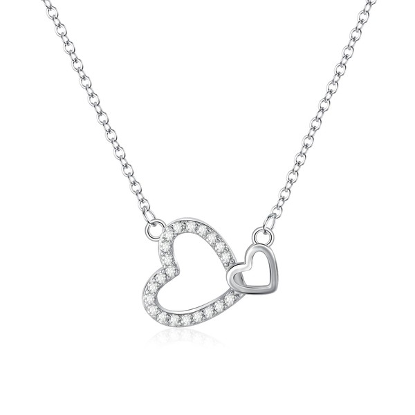- [Elegant & Sentimental Design] Capture the essence of love with this exquisite double heart necklace. Crafted with intricate hollow hearts, the larger heart is adorned with sparkling zirconia stones for a touch of glamour, while the smaller heart retains a pure silver finish, creating a beautiful contrast