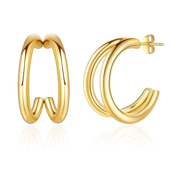 Double Hoop Earrings-14K Gold Plated Earrings Huggie Earrings Gold Huggie Gold Stud Earrings Hoop Earrings Half Hoop Earrings Chunky Gold Hoop Earrings Dainty Gold Earrings for Women Gifts