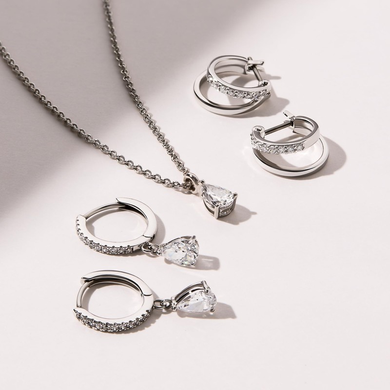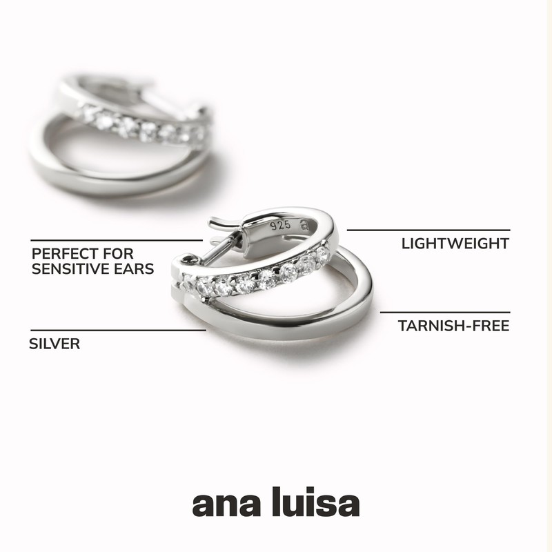 Double Hoop Earrings - Toda Mini Silver, Sterling Silver, Cubic Zirconia