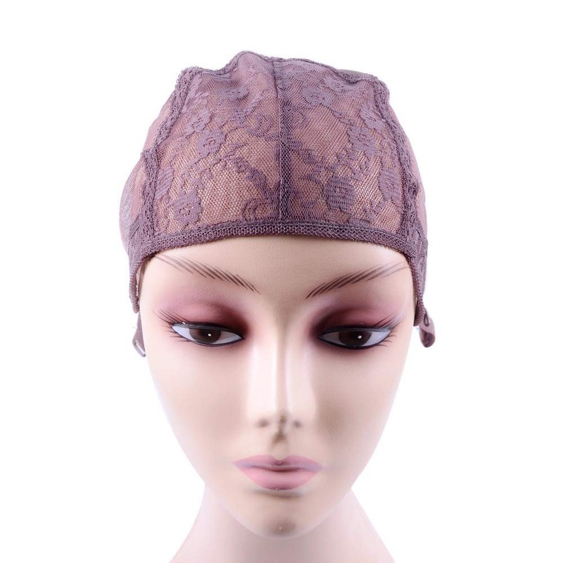 Double Lace Wig Cap with Adjustable Strap Hair Net Wig Cap for Making Wigs (Brown L 56 cm)