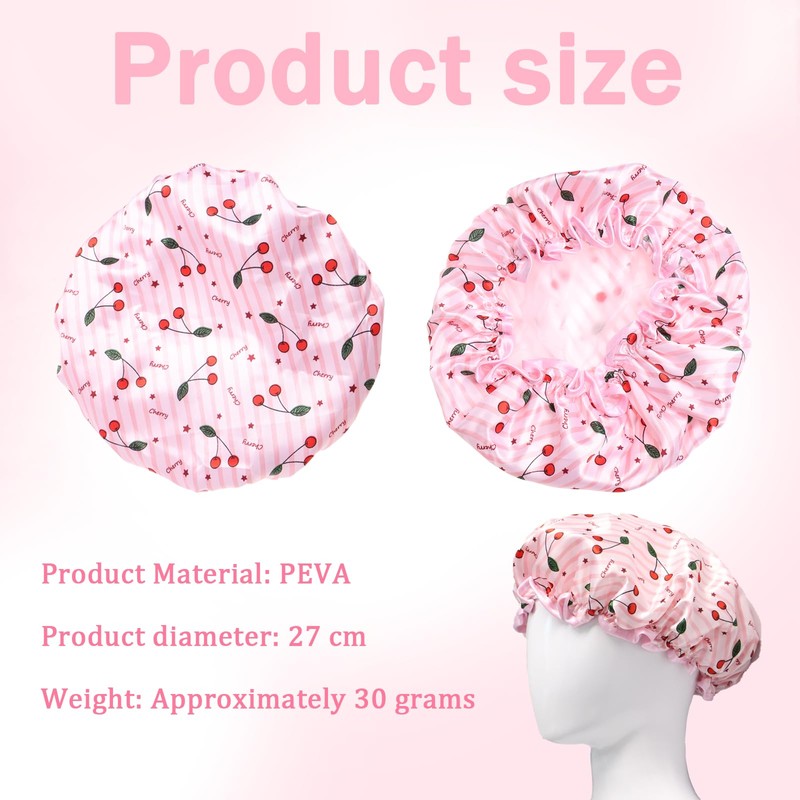 - CUTE CHERRY PRINT: The shower cap is printed with a fashionable and cute cherry pattern, with bright colors, full of vitality and playfulness, suitable for young women, adding fun and relaxation to bathing.