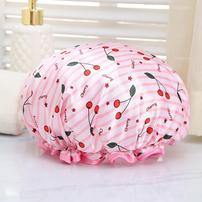 2.The shower cap is printed with a fashionable and cute cherry pattern.