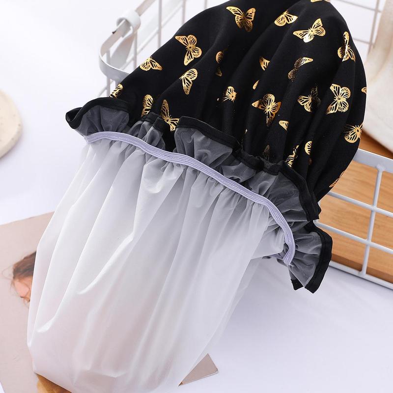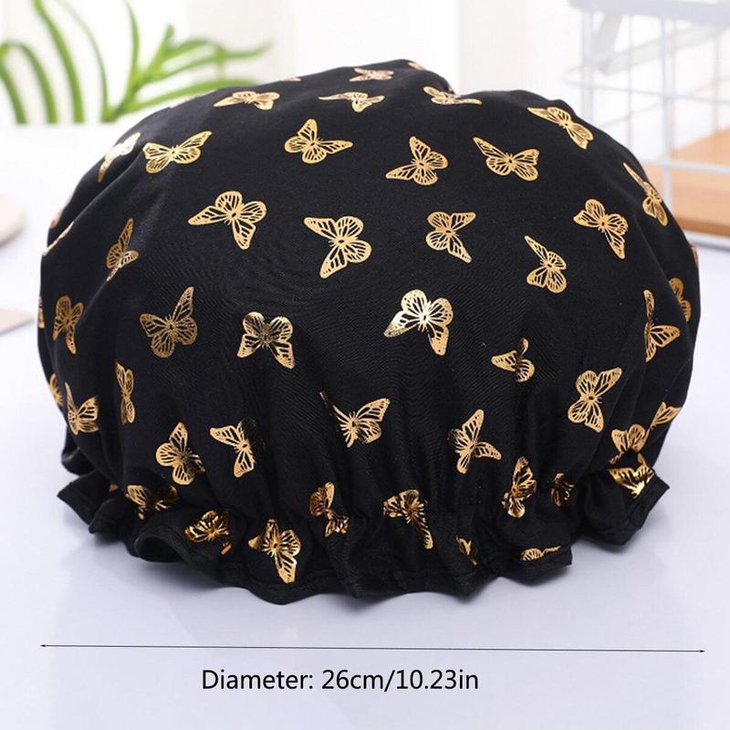 Double Layer Thickened Shower Cap, 1 Count Butterfly Pattern Waterproof Bathing Hair Cap, Bathroom Supplies for Women & Girls - Color: Black, Specification: 1 Count