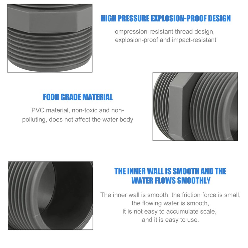 - High-quality material - thread fitting made of high-quality PVC, has a strong wear resistance, higher strength, so durable in use, no leaks, long service life.
