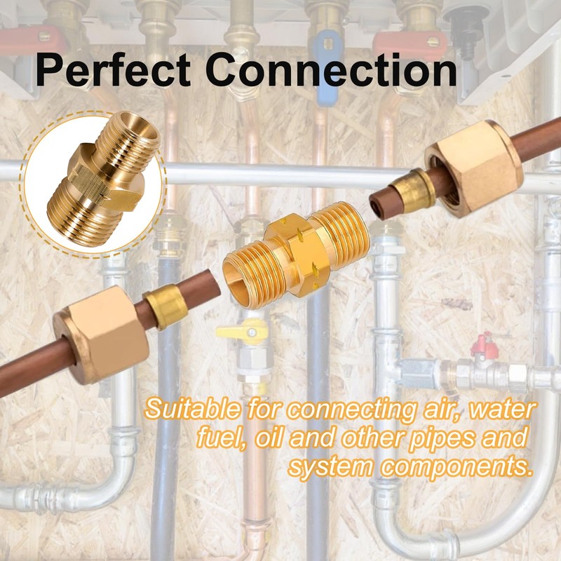 Double nipple 1/4 inch left right gas, 4 pieces gas hose connector double nipple gas hose adapter brass external thread for gas air conditioning systems solar systems sanitary