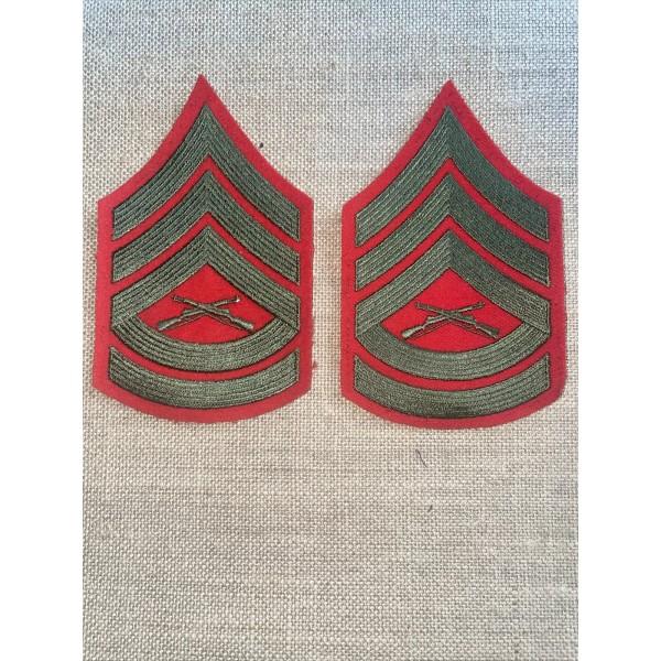 Double Pack USMC Dress Gunnery Sergeant E7 Rank Stripes No 735 Green On Red Wool