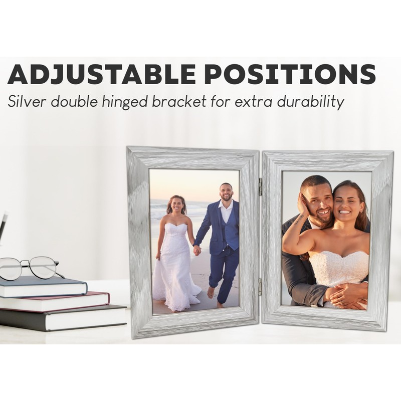Double Photo Picture Frame 6 x 4, Grey, Holds 2 Photographs, Twin Hinged 6x4 10 x 15 cm Picture Frames, Grey Frames, Photo Frame, 6x4 Photo Frames, Picture Frames, 4x6 Photo Frames