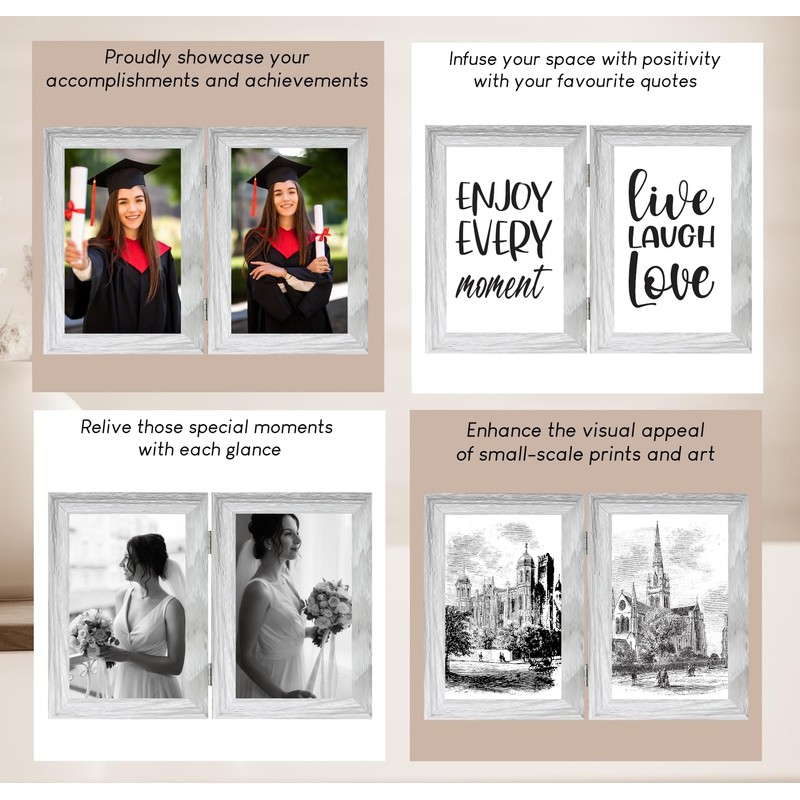 - Ideal for Photographs – Whether treasured moments or family memories, these 6x4 twin frames are specifically designed to protect and highlight your photographs. With their sleek and stylish finish, they’re perfect for both home and office environments.
