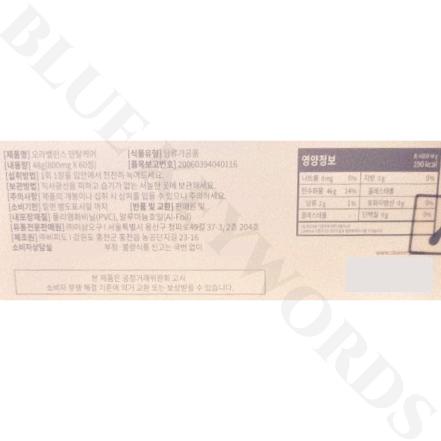 * 제품을 섭취하실 때 날 수 있는 단 맛은 설탕이 아닌 (본 제품에는 설탕이 전혀 들어가 있지 않습니다) 자일리톨의 맛이므로 안심하시고 섭취하셔도 됩니다.