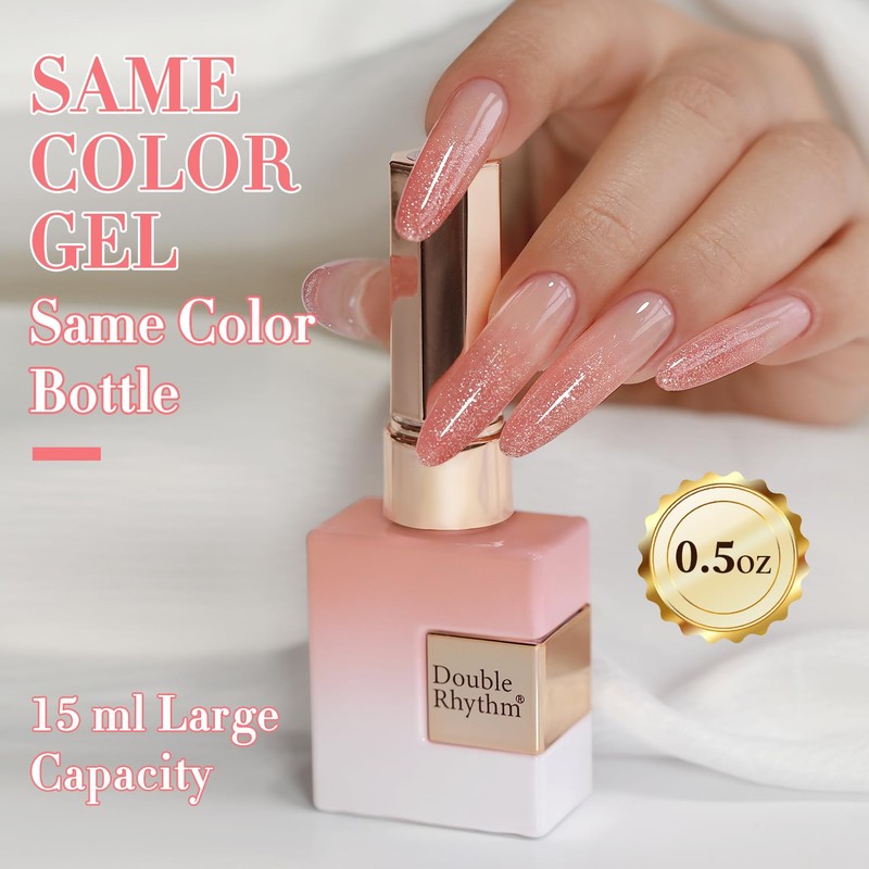 Double Rhythm 0.5Oz Glitter Gel Polish Shimmer Reflective Color for Nail Art Salon DIY Soak Off 15ml Nail Lamp Gel Polish at Home (Peach Pink-B1172)