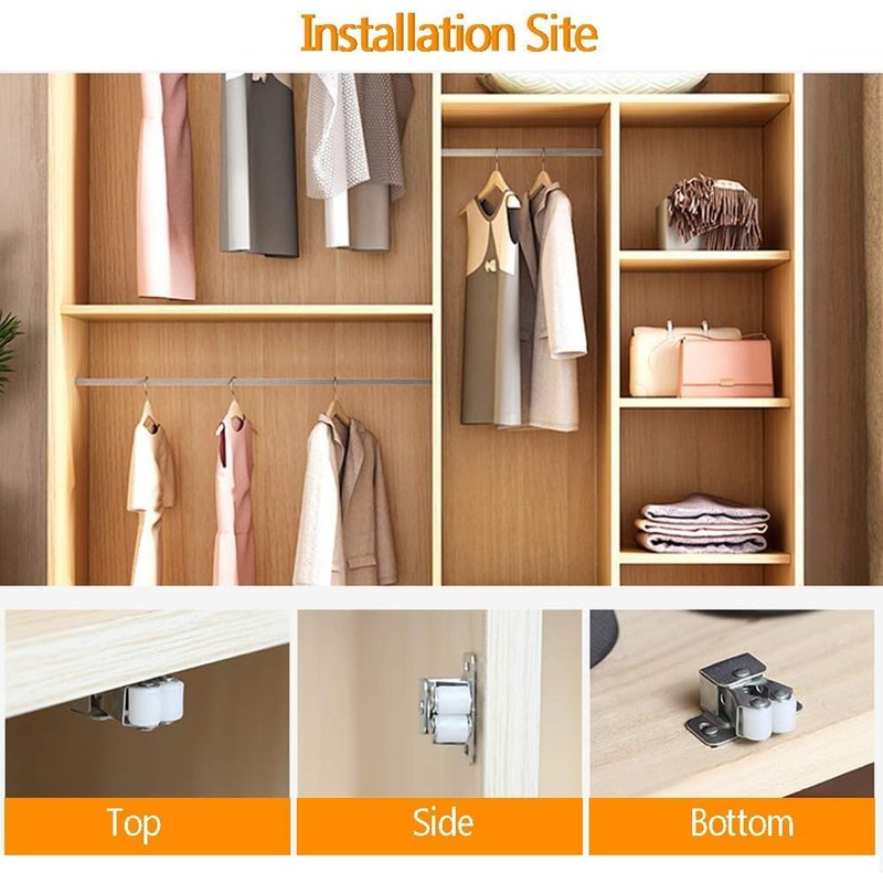 - Quiet and Smooth: The double rollers are nylon pulleys that do not make metal noises during collisions, slide smoothly, and do not make noise when opening and closing, but can firmly lock the cabinet door.
