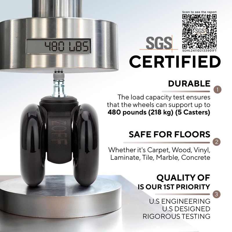 ZOFF Double Rollerblade Office Chair Wheels - 3 inch - Replacement Rubber Chair Casters - Smooth & Quiet Rolling - Easy Installation - Safe for Hardwood Floors & Carpet - Universal Fit - Set of 5