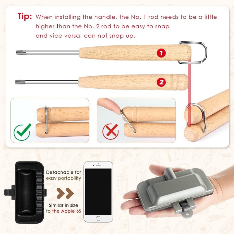 - Portable Design: With detachable handles and a compact size, this sandwich maker is easy to carry and perfect for camping or outdoor cooking. Its lightweight construction and easy-to-carry design make it a must-have for your next adventure.