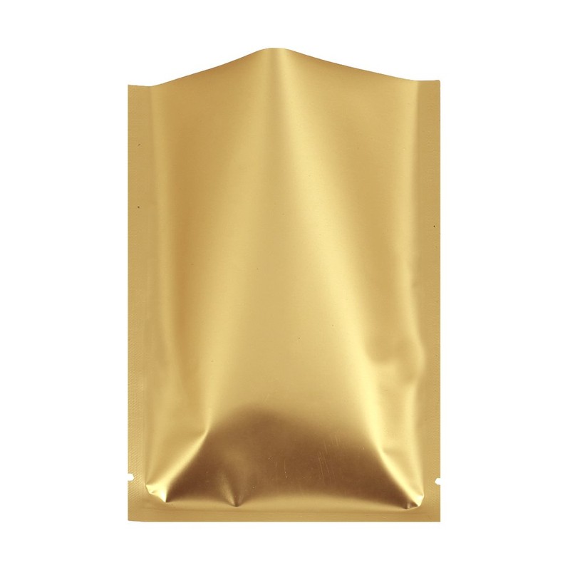 Double-Sided Matte Gold Aluminum Foil Open Fill Heat Seal Bags for Small Business, Home Use, Food Storage, Beauty Packing Travel Sample Pack, Blind Bag Creation (100, 5.51 inch x 7.87 inch)