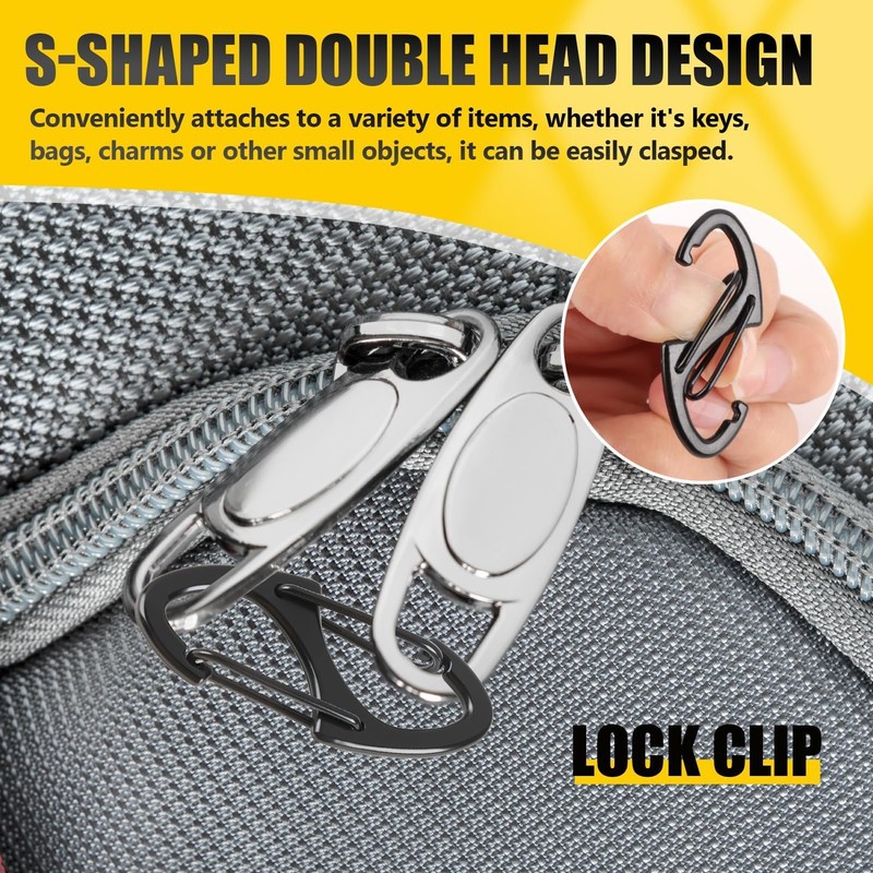 - Dual Opening Convenience: This innovative s clips features dual opening zipper locks that provide versatile attachment options. You can securely fasten valuables like keys or chains on one side while connecting the other side to backpacks, belt loops, or pockets. The twin gate design offers quick access while maintaining reliable security for your essentials.