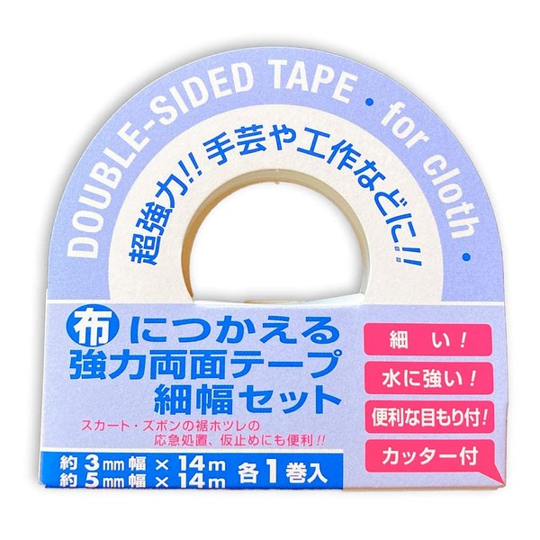 Double-sided Tape For Cloth, 0.1 inch (3 mm) / 0.2 inch (5 mm) Width, 1 Roll Each