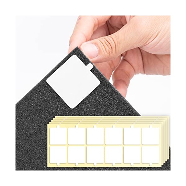 - Includes 60 squares. Size -1.4 x 1.4 inches (35x35mm); Thickness: 0.06 inch (15mm). 60 squares can mount 12 or 15 acoustic panels.