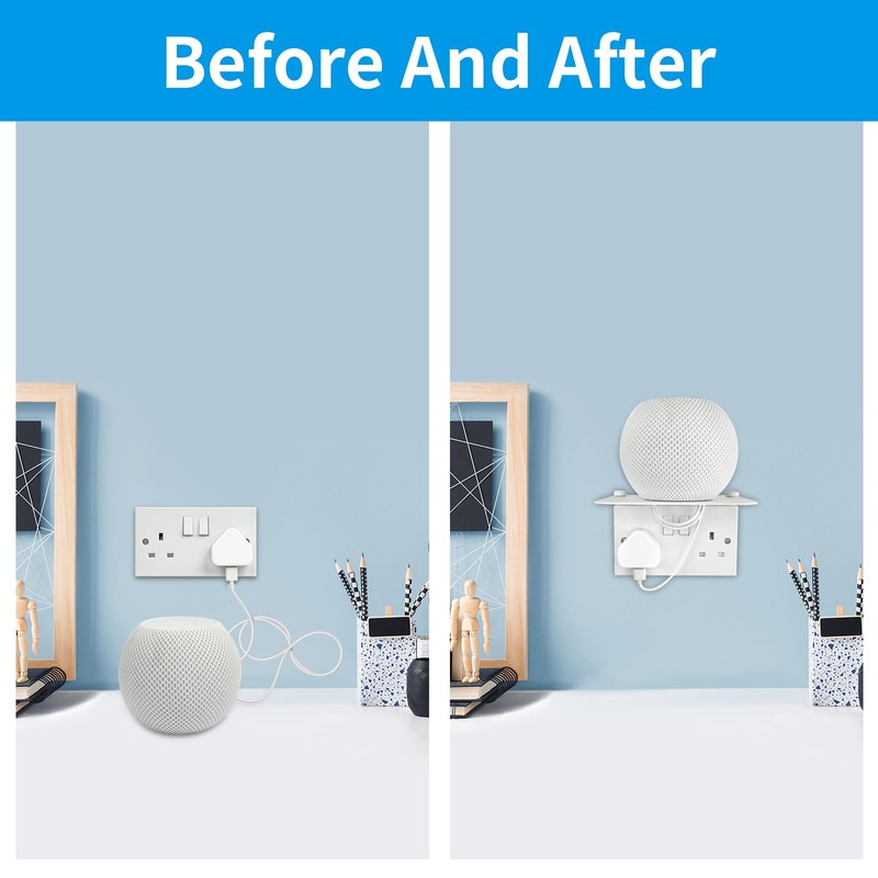 - Multifunctional Use: If your space allows, this shelf can also be mounted upside down for added versatility. It can hold a wide range of small electronics, including the Apple HomePod Mini, cellphones, razors, toothbrushes, diffusers, and smart home speakers such as Google Home, Echo, and Dot