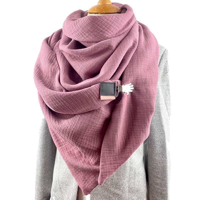 - "Chic in Muslin" - XXL triangular scarf. SEEN * LOVED * AND * ESSENTIAL IN EVERYDAY! Our muslin cloths are double stitched, making them cuddly and cuddly. This model has been sewn from a soft muslin in dusky pink. The cute clip closure "the helping hand" serves as a closure.