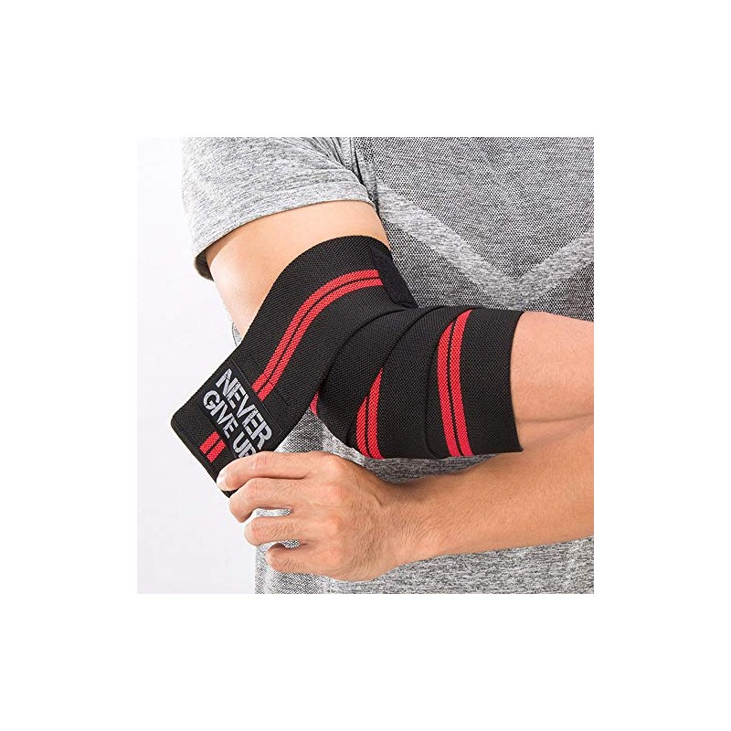 (Double Stripe, Red) - YOUFINE Professional Elastic Elbow Wraps Straps Elbow Support Compression Protection Brace for Bodybuilding Workout Powerlifting Men Gym