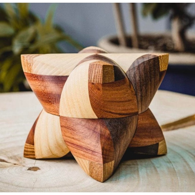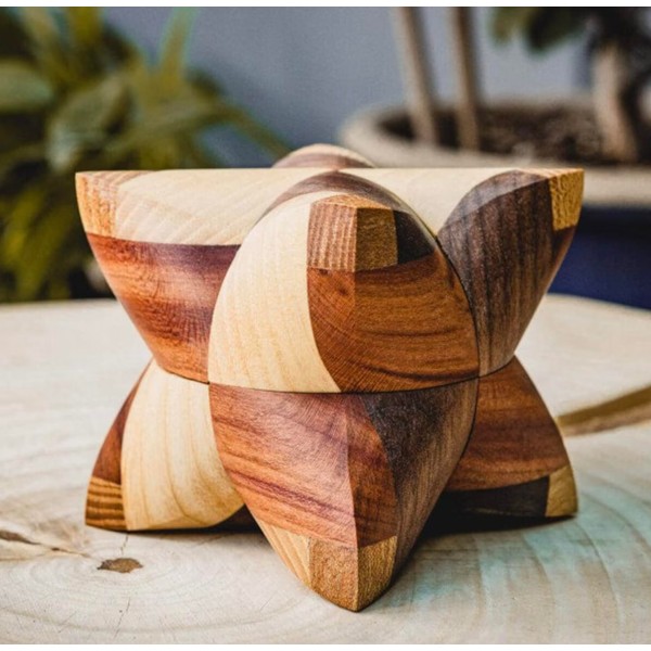 Double Tetrahedron Puzzle - Interlocking Wooden Puzzle - Made from Walnut, Maple, Cherry and Oak - Made in the Czech Republic by Vaclav Obsivac