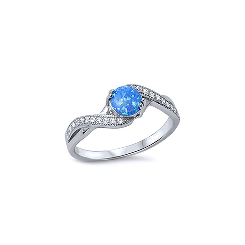 | Manufacturer: | Sterling Silver Round Blue Simulated Opal Engagement Ring 7MM ( Size 4 to 10 ), 10 |
