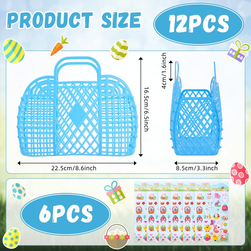 DoubleFill 12 Pack Easter Eggs Basket with Bunny Stickers for Easter Egg Hunts and Easter Eggs Festival Plastic Easter Basket Jelly Purse Jelly Basket Beach Bags Jelly Beach Bag Tote Gift Basket