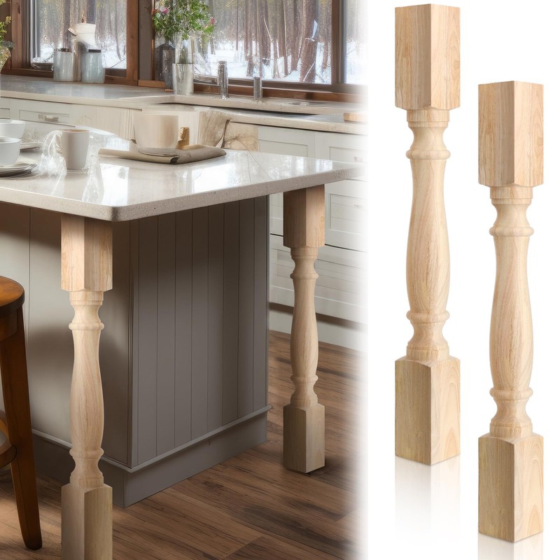 - Farmhouse Style: these dining island table legs are made from natural rubber wood, making them both strong and stable; The rustic design showcases natural grain patterns, making these posts not only practical but also beautiful, suitable for adding a touch of farmhouse style to any space