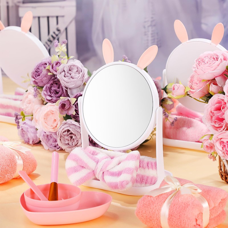 DoubleFill 8 Set Spa Party Supplies Lovely Bunny Cat Mirrors and Headbands Spa Party Favors for Girls Birthday Slumber Sleepover Party Gifts(Rabbit)