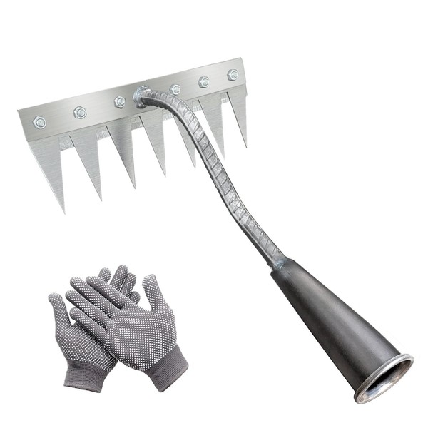 - (Excellent Durability) This product is made of high-quality metal material that is abrasion resistant and durable. Multi-functional rake for agriculture, can be used for a variety of applications such as weeding, landing, and soil pilling. Designed to not bend or break over time
