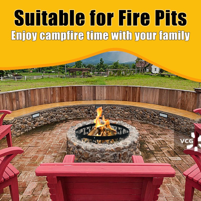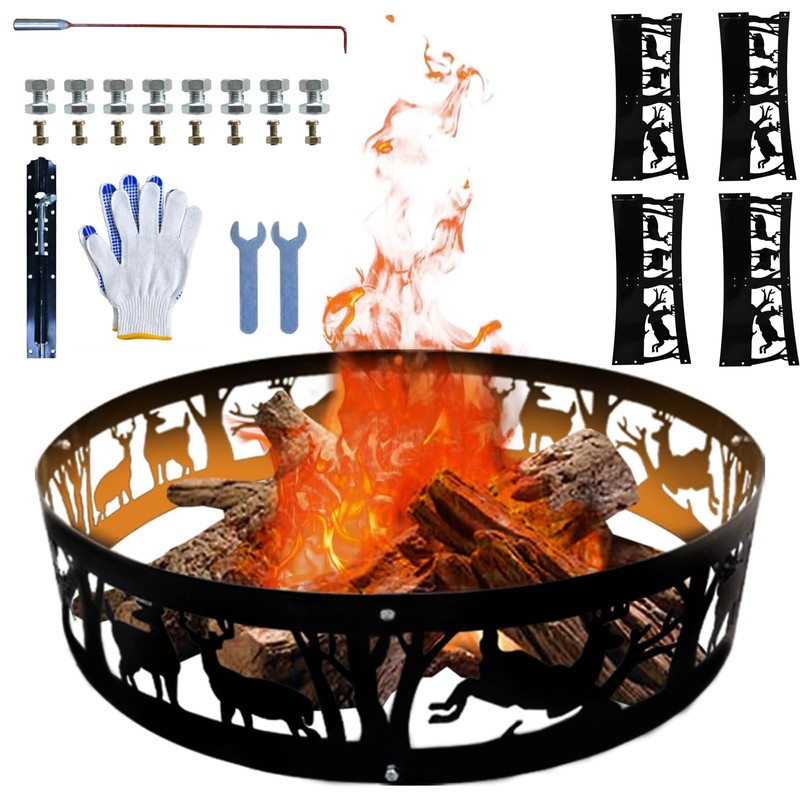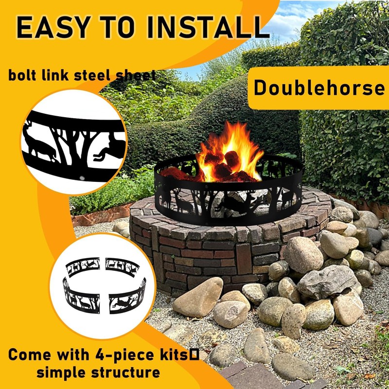 Doublehorse Fire Pit Ring, Portable Steel Fire Ring for Camping Bonfire Beaches Backyard, 36in Burning Campfire Ring, Fire Ring for Outside Fire Pit, Smokeless Fire Ring with Forest and Animals Design