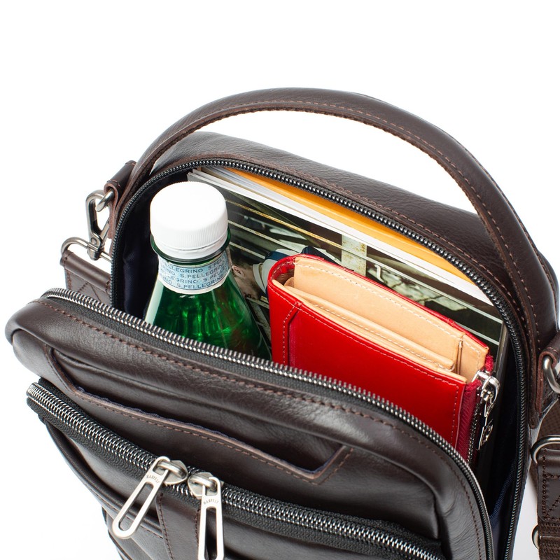 - Product Description: Small size 2-layer square shoulder bag with handle. There are plenty of storage pockets to store A5 size notebook and 16.9 fl oz (500 ml) plastic bottles. The front pocket is secured with a belt mag hook for convenient storage of frequently used items