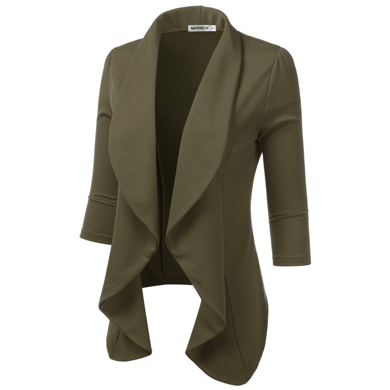 Doublju Womens Plain Simple Thin Lightweight 3/4 Sleeve Open Blazer Jacket with Plus Size Olive X-Large